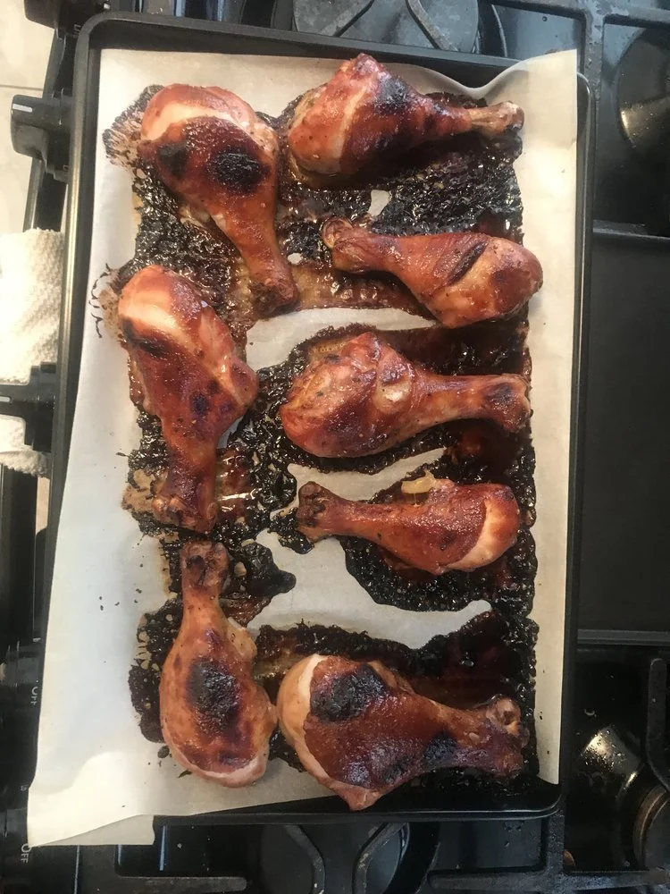 about 3 pounds of chicken wings, or drumsticks, which is what i used because they were cheap at Aldi